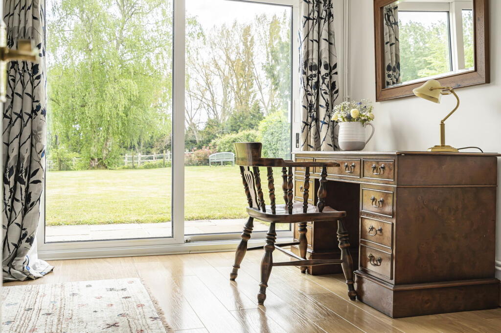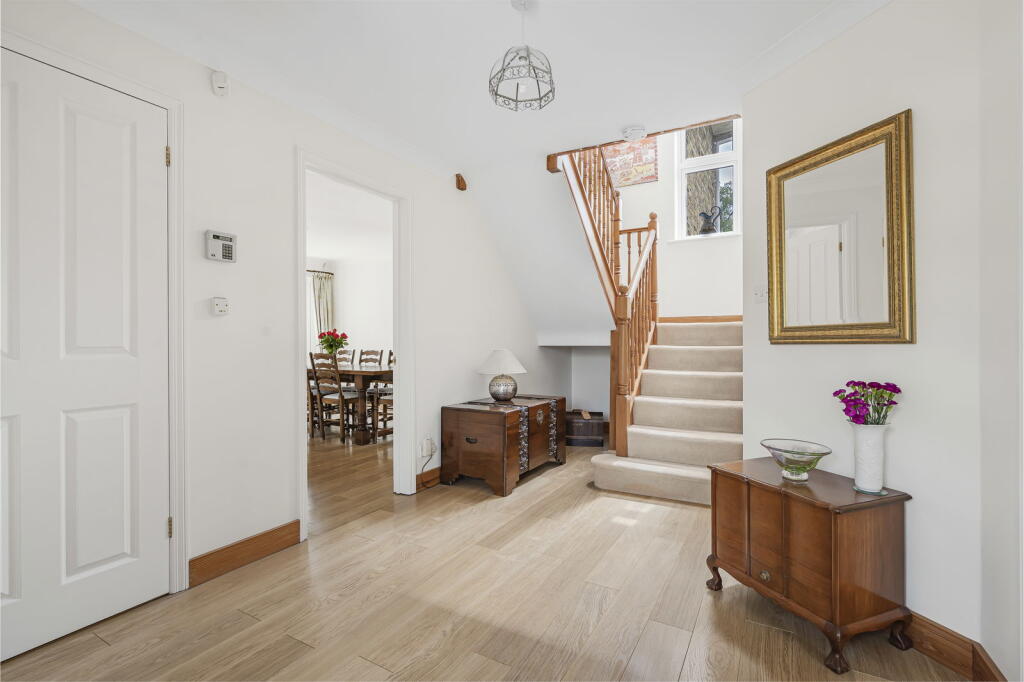 A substantial detached family home occupying a fabulous 1/3 acre plot with an open aspect backing onto fields and situated in a much sought after private road within a ten-minute walk from Effingham Junction Station.The spacious four bedroom accommodation has a light and airy feel evident from...