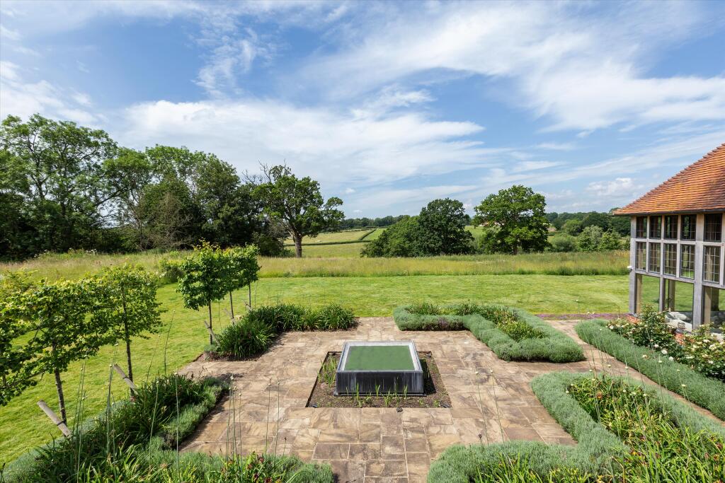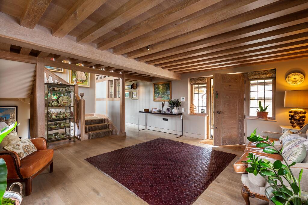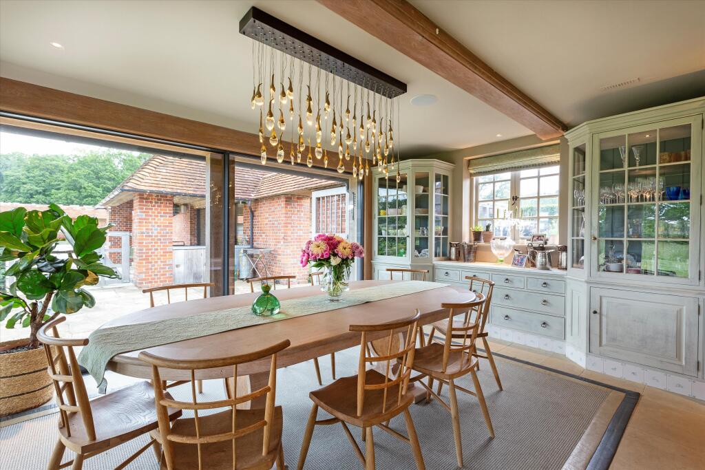 The property is located in Dunsfold, Surrey, a village in the Waverley borough. Based on the provided information and images, the property appears to be in excellent condition, having undergone recent renovations or extensions. The high-quality finishes and modern amenities are evident throughout the property. The extensive grounds, including a large garden, swimming pool, and tennis court, are well-maintained and add significant value. The size of the plot is considerable, providing ample space and privacy.