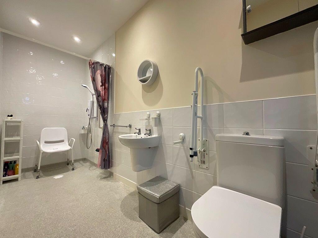 This semi detached two bedroom bungalow has been adapted to provide wheelchair accessible accommodation with south facing rear garden