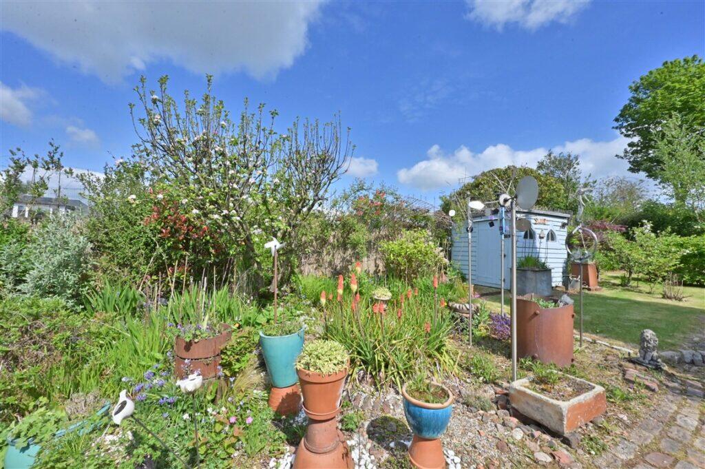 The property appears to be in good condition, well maintained and presented. The garden is a significant feature, offering a good-sized outdoor space with mature planting and a patio area. The images show a well-maintained and established garden.