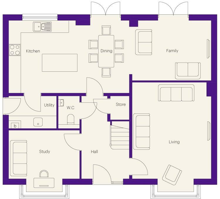 The Marlborough PREMIUM FAMILY HOME. Generous OPEN-PLAN kitchen/diner with INTEGRATED APPLIANCES, ISLAND and TWO sets of FRENCH DOORS. Separate UTILITY. STUDY. TWO EN-SUITE bedrooms. LARGE BATHROOM with SHOWER CUBICLE. PV SOLAR PANELS. Attractive DOUBLE-FRONTED exterior. Beautiful SHOW HOME to view!