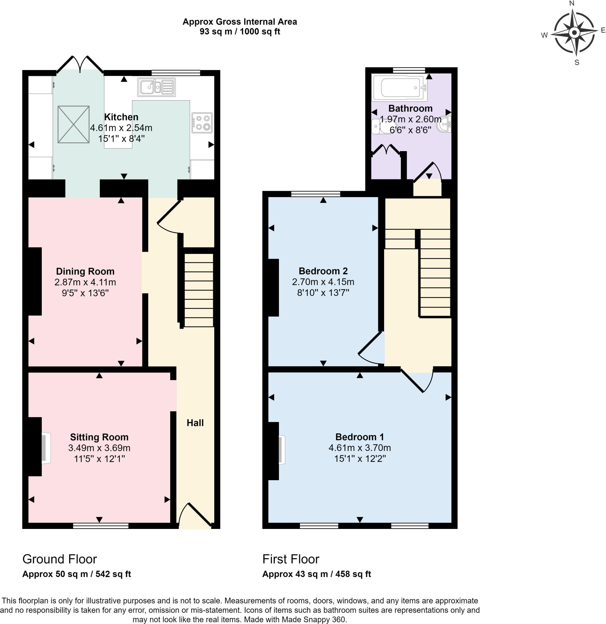 1000sqft two bedroom two reception Victorian family home with extended kitchen/breakfast room, first floor bathroom and sheltered level rear garden