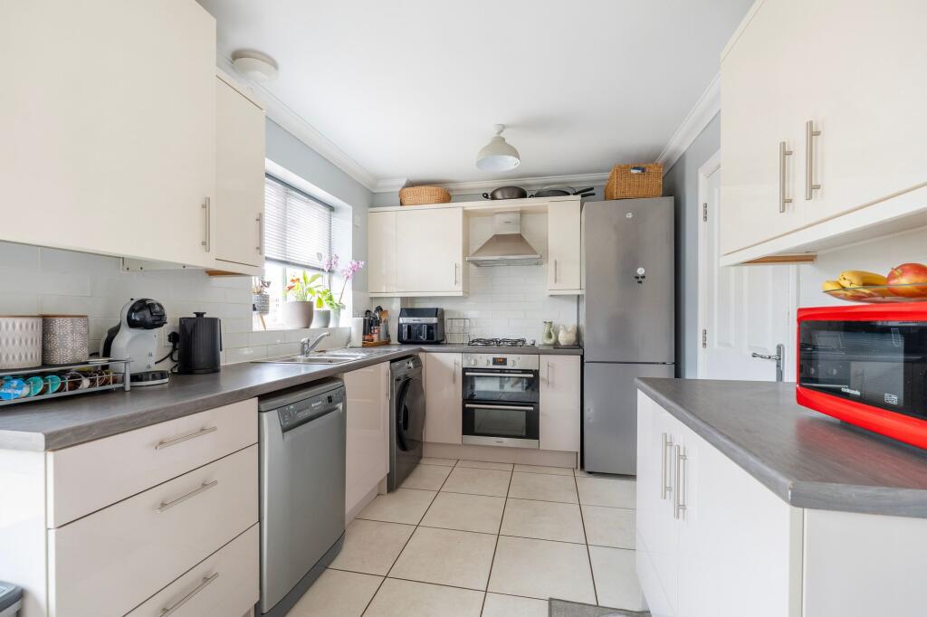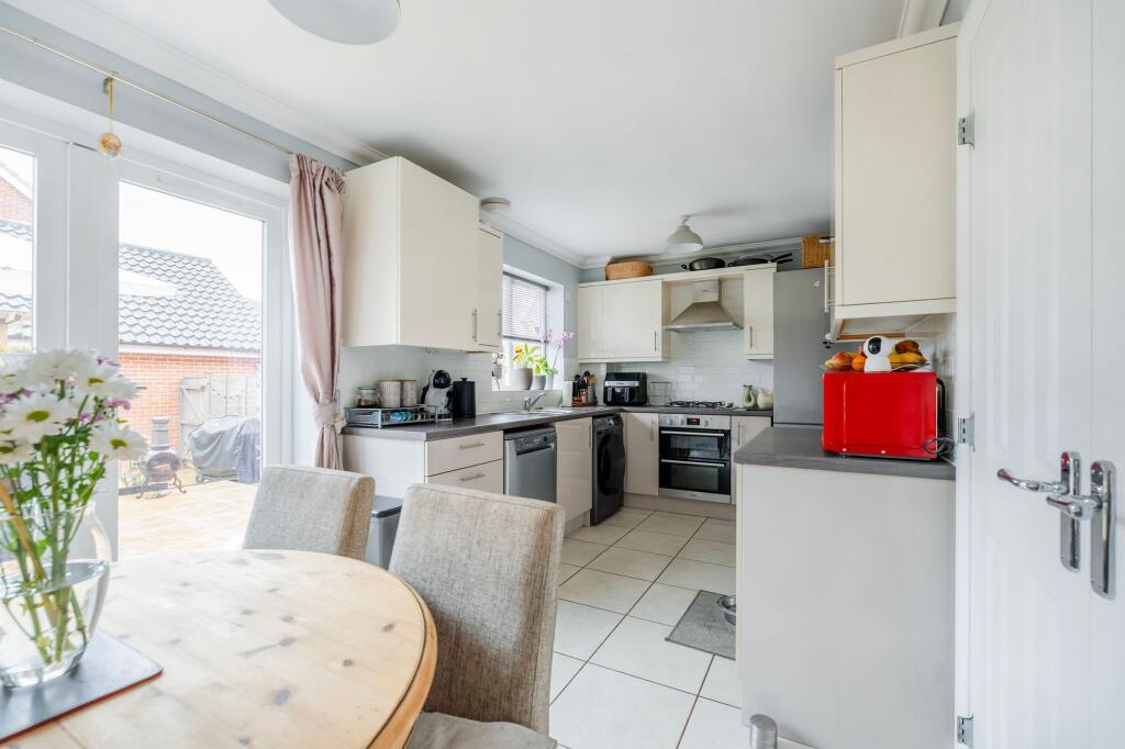 Designed with everyday comfort and practicality in mind, this well-presented three-storey mid-terrace home offers generous living space throughout. A bright kitchen/diner sits at the heart of the home, featuring modern white gloss units, wood-effect worktops and French doors leading out to the ga...