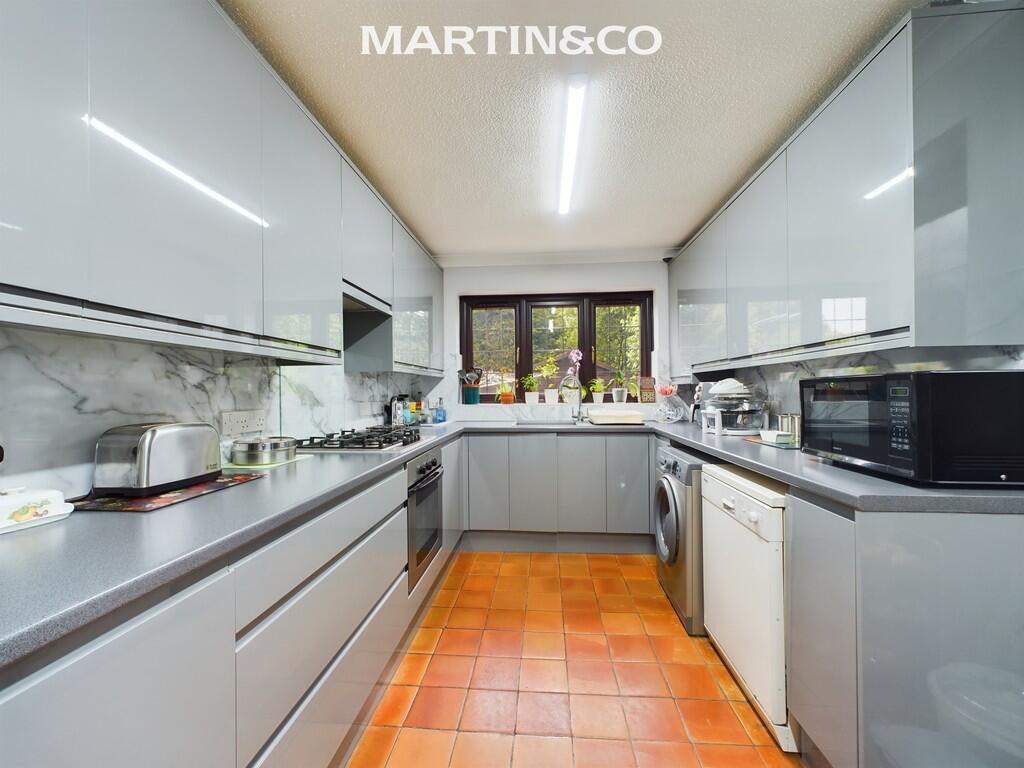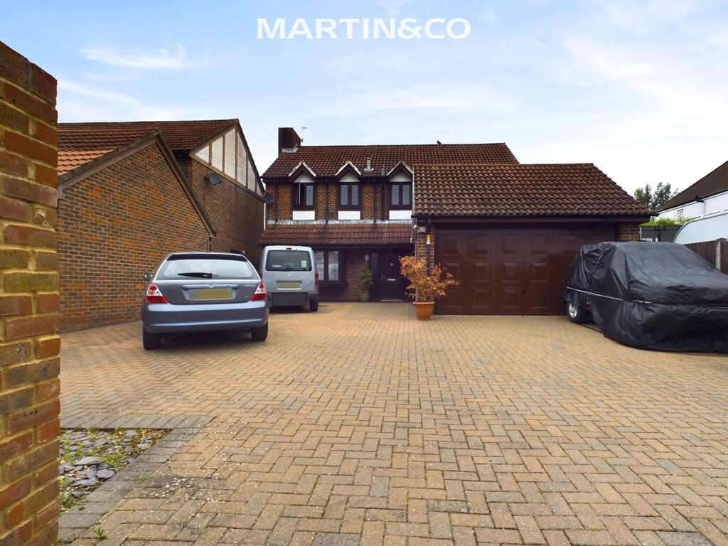 This is a detached property in Egham Hythe, Staines-upon-Thames, featuring five bedrooms and three bathrooms. The location is convenient for families, with several schools nearby and good transport links. The property has a garden, garage, and driveway. While the kitchen appears modern, some other areas of the house could benefit from updating. The asking price of £750,000 is relatively high for the area but reflects the size and type of property.