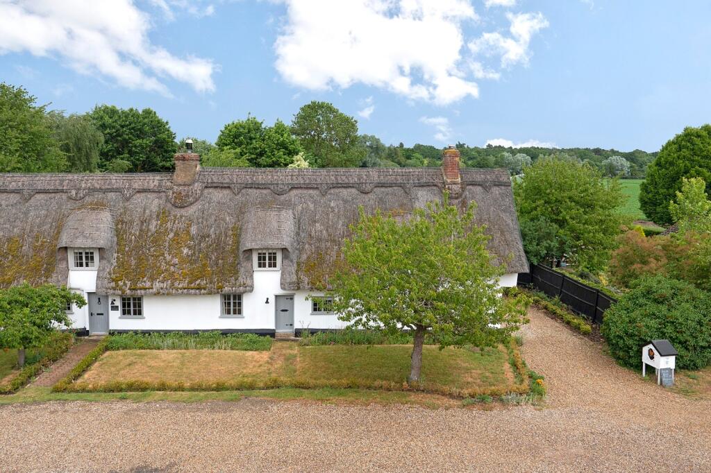 A beautifully presented and modernised Grade II listed cottage overlooking the village green, with double garage and gardens leading down to the water meadows. All in 0.38-acre.