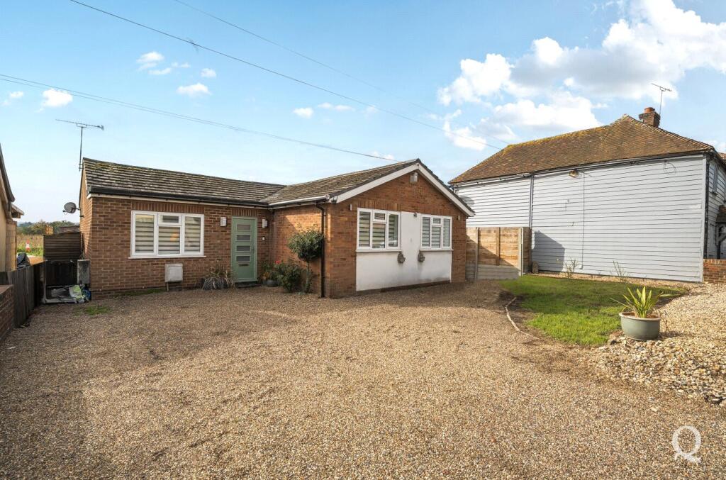 This is a three-bedroom bungalow on Keycol Hill in Bobbing, near Sittingbourne. The property benefits from modern interior finishes and a well-maintained exterior, suggesting recent renovations. It features a decent-sized garden and a driveway. The location offers a mix of rural and suburban living, with proximity to transport links and schools, though not within immediate walking distance of extensive amenities. The price per square foot is slightly below the area average, making it a reasonably priced property.