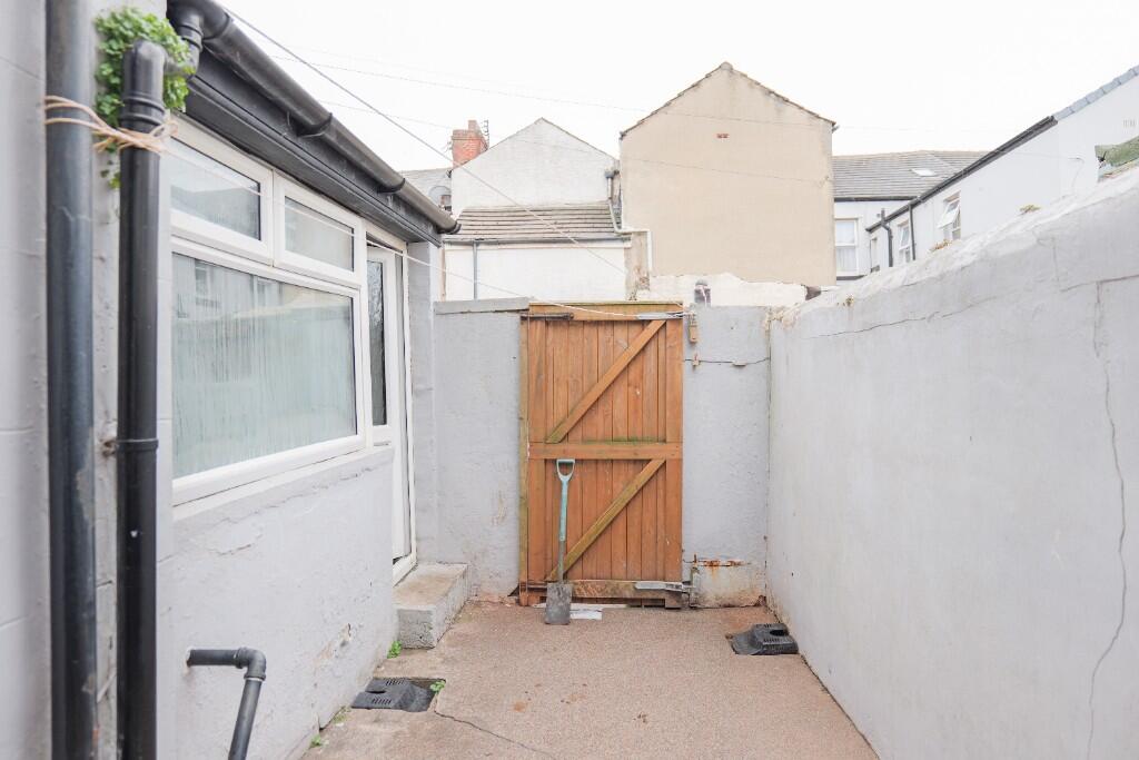This is a three-bedroom terraced house in Bloomfield, Blackpool. The property features a modern kitchen and bathroom, but some areas may benefit from updating. It has a small outdoor space. The location offers proximity to local schools and transportation links, including Blackpool South train station. The price appears reasonable for the area and property type.