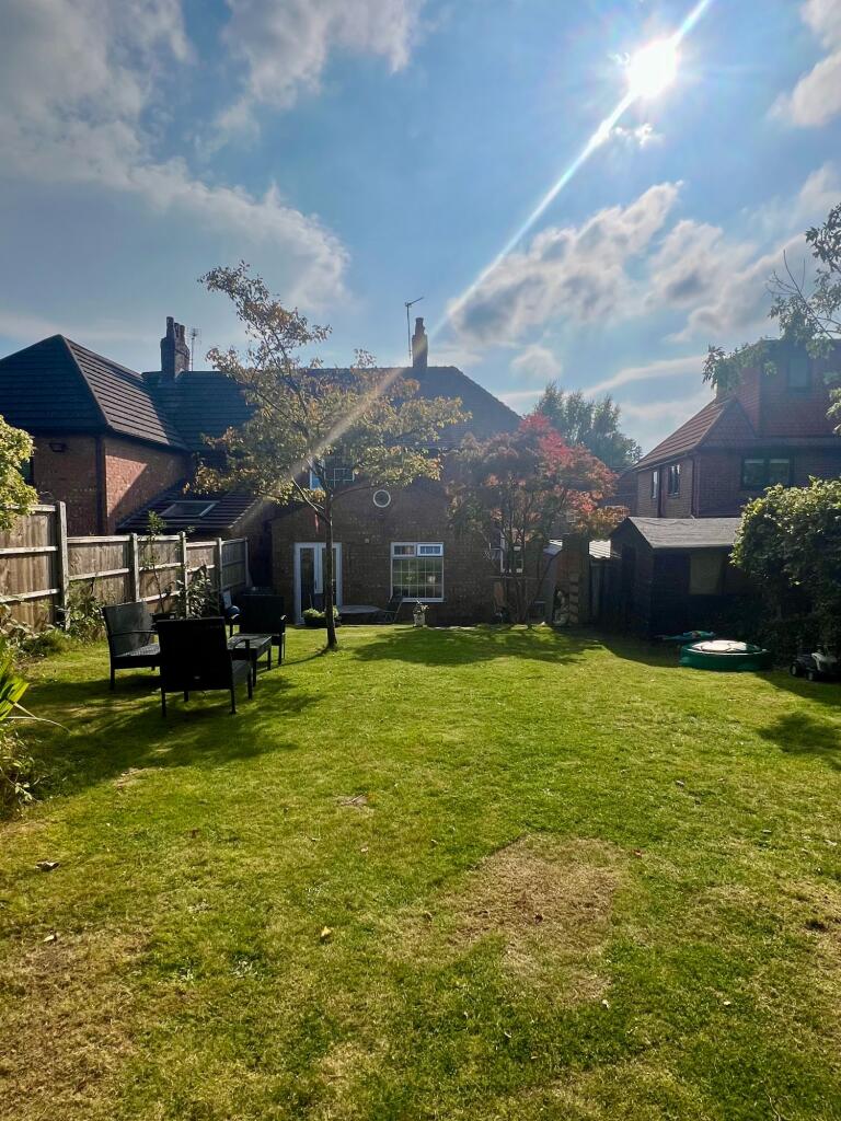 To Let - Hale Village (WA15 0LP): Elegant 3-bed home with off-road parking, large garden, two reception rooms incl. bright dining extension, 3 bedrooms, WC + family bathroom, shed & small garage. Prime location near top schools, Altrincham & Manchester. Enquire now for a viewing!