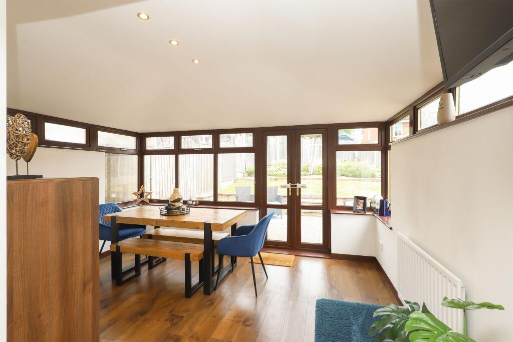 This three-bedroom detached house in Hollingwood, Chesterfield is listed at £220,000. The property benefits from a modern kitchen and conservatory extension, suggesting recent renovations. The location is convenient, with a primary school within close proximity. However, the plot size is small, and the average house price in the area is higher, at £297,968. Nearby comparable properties show a range of prices, with some detached houses selling for less and others for more than the asking price. The property appears well-maintained and in good condition, based on the provided images.