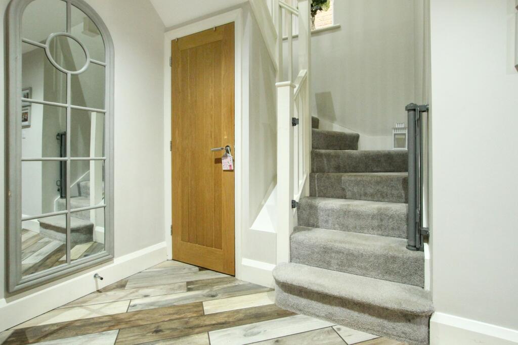 This is a well-presented detached property in Moira, near Measham North. The house has four bedrooms and one bathroom. The interior is modern and appears to be in good condition. It benefits from a garden with a shed. The property is located near local schools and amenities. The asking price seems high compared to average property prices in the area.
