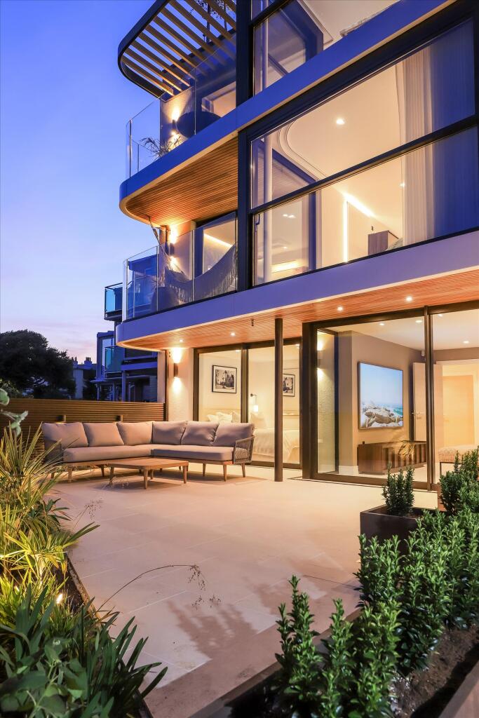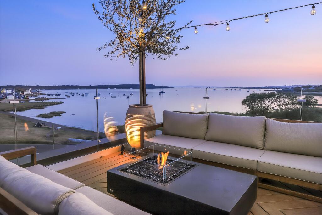 This property is a stunning modern terraced house located in Mudeford, Dorset. The location is excellent, offering beautiful waterfront views and proximity to local amenities. The property is in exceptional condition, showcasing high-end finishes and modern design. While the plot size is not specified, the property includes multiple outdoor spaces, including a patio and a large roof terrace with a fire pit. Given the exceptional condition, desirable location, and luxurious features, the list price is justifiable, although higher than the average for the area. However, the unique features and views command a premium.