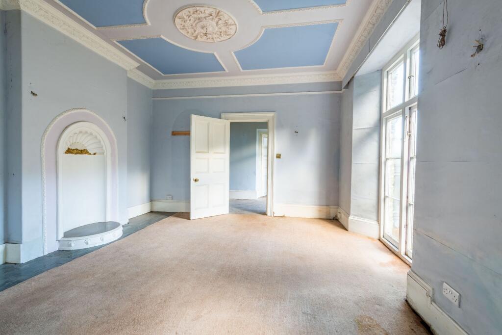This is a large detached property located in Lynton & Lynmouth, North Devon. The property has 7 bedrooms and 4 bathrooms and is 2,646.48 sqft. The property is in need of renovation but has a large plot size and includes a garage/workshop/storage building. The property is surrounded by mature trees and shrubs. The property is located 0.71 KM from Lynton Church Of England Primary School which has a good Ofsted rating. The property is listed for £500,000 which is below the average price for a detached property in Lynton.