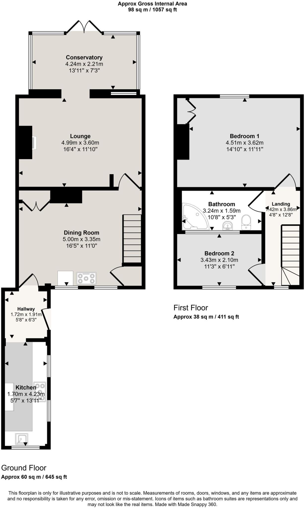 This is a two-bedroom terraced house located on Brickkiln Row in Bowdon, Trafford. The property is listed for £350,000. Bowdon is considered a desirable location, with good access to schools and transportation. The property has a garden and a conservatory. However, the interior photos suggest that the property requires some renovation. The average price in the area is £546,111.