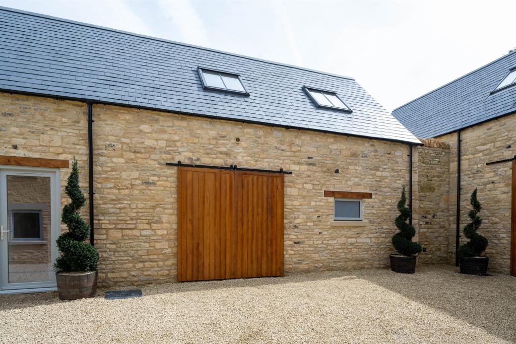 The Stirrups is an exceptional residence nestled in the idyllic Cotswold village of Withington, just a short drive from Cheltenham. From the moment you step inside, you're greeted by a spacious, welcoming hallway featuring a striking Cotswold stone wall, lovingly crafted from the original materia