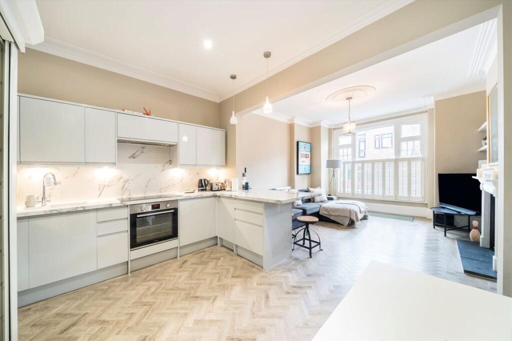 An extremely spacious three bedroom split level flat located in a red brick Victorian conversion close to Parsons Green and River Thames. The flat spread over 1200 sq ft is immaculately finished throughout with an open plan kitchen living room and direct access out into a private garden.