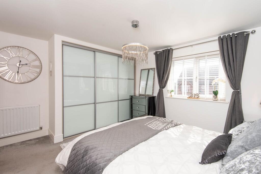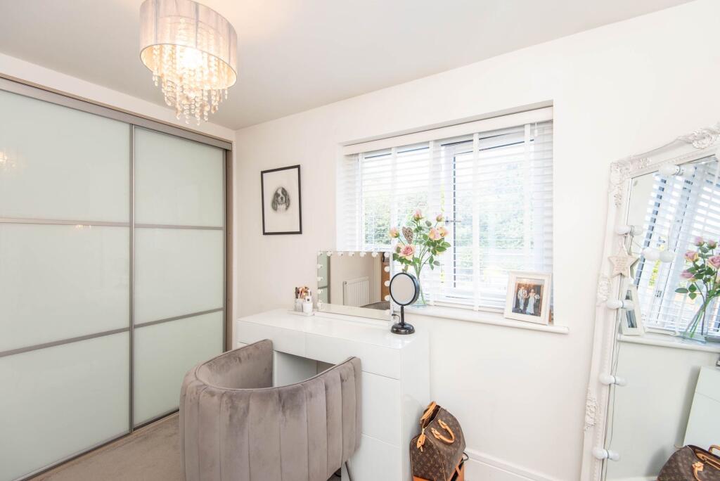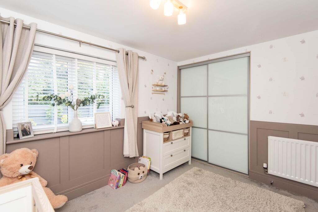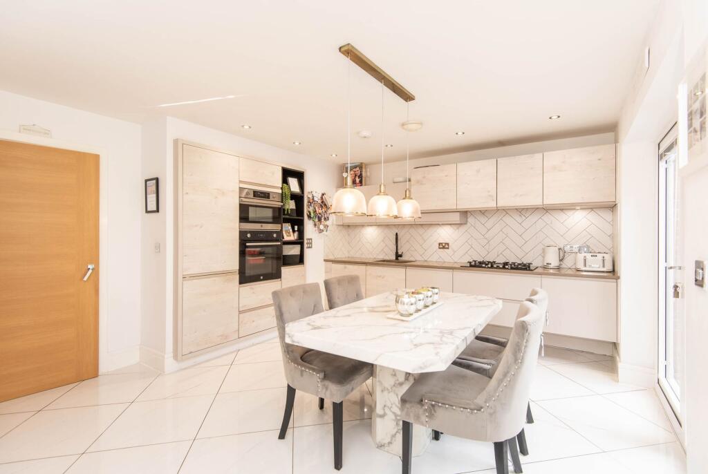 This stunning four-bedroom, two-bath detached family house is positioned on a quiet road within this sought-after, newly built estate.