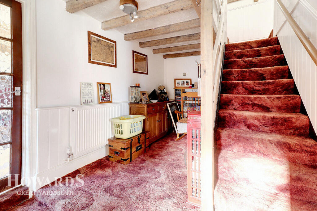 This property is a charming detached house located in Martham, Norfolk. The property benefits from a good-sized garden and several outbuildings, including what appears to be a large garage/workshop. The interior is presented in a traditional style with exposed beams and a fireplace, but some areas may benefit from modernisation. The location is good, with a number of schools within a reasonable distance. The list price is slightly higher than the average price per square foot for the area, but this is likely due to the property’s size, outbuildings and land.