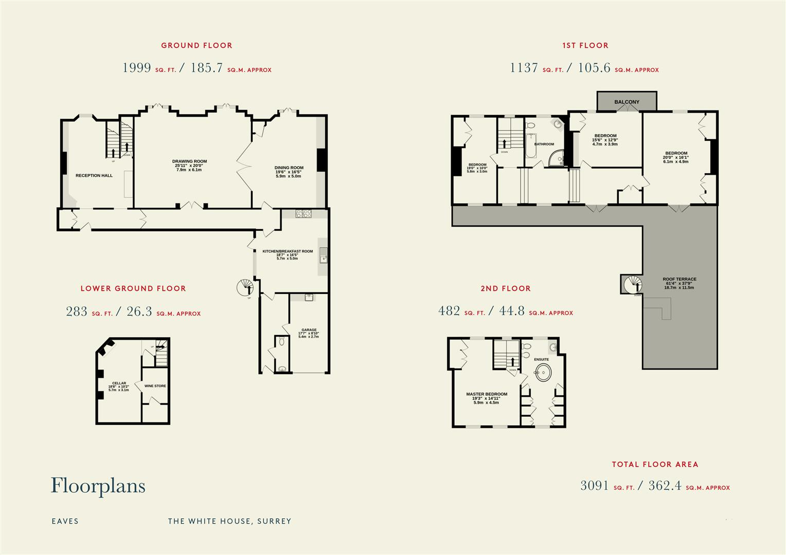 The White house, situated on a private road fronting Hampton Court Green, offers a reception hall, inner hall / study, kitchen/breakfast room, drawing room, dining room, 4 double bedrooms, 2 bathrooms, cellar and wine store, courtyard garden, balcony and roof terrace, further side entrance, cloak...