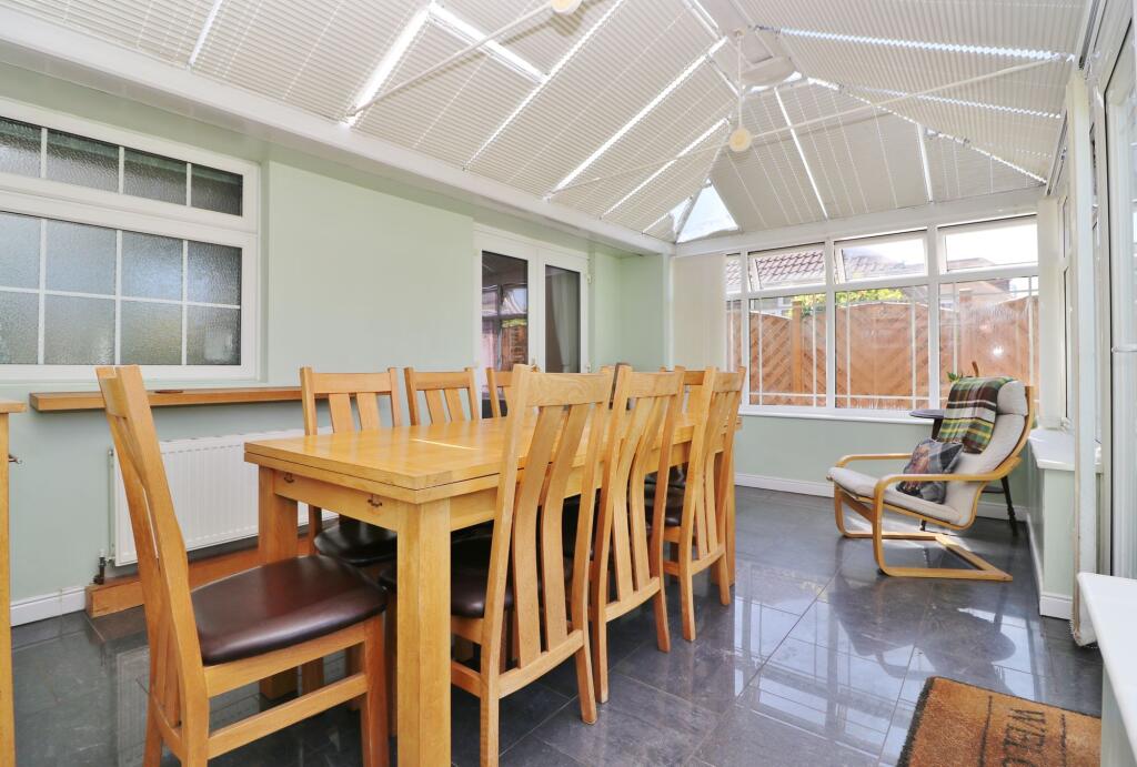 Offered with no forward chain and featuring a good size rear garden, this three bedroom bungalow benefits from driveway parking and a detached single garage. The well-presented accommodation briefly comprises a spacious lounge, kitchen/diner, generous conservatory, three bedrooms and a modern fam...