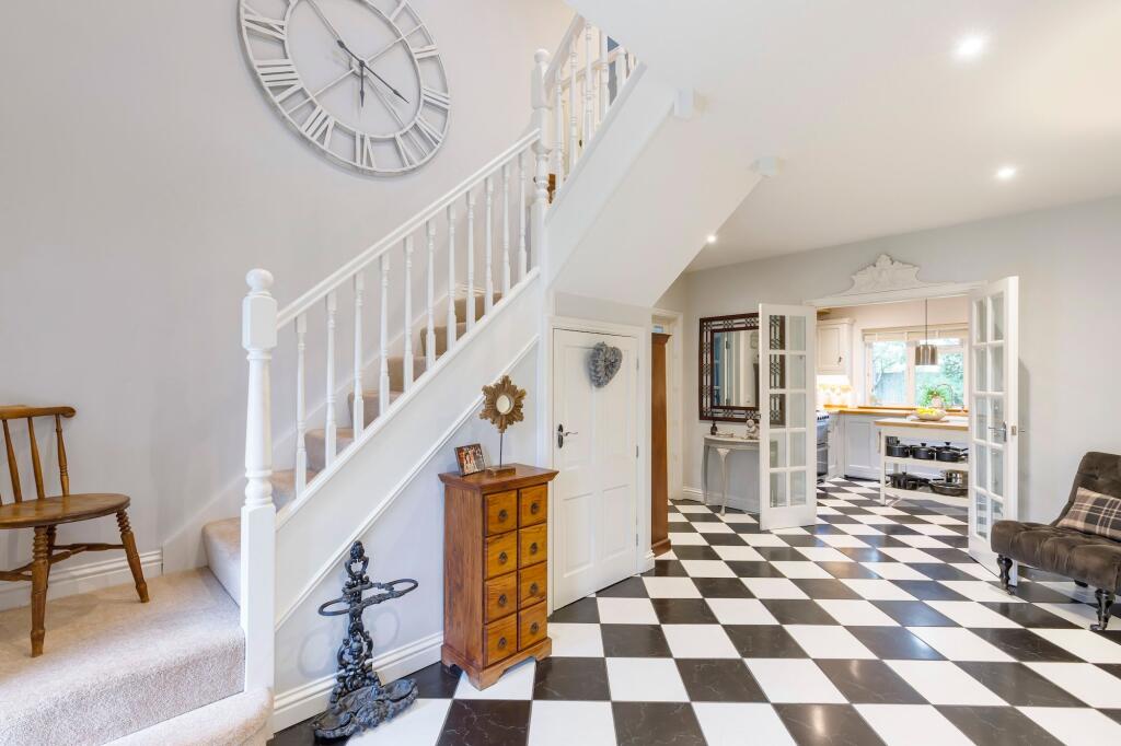GUIDE: £850,000 - £900,000. A seldomly available 5-double bedroom detached residence (c. 3,000 sq.ft), currently modelled for large family/multi-generational living, set in a sought-after country lane.