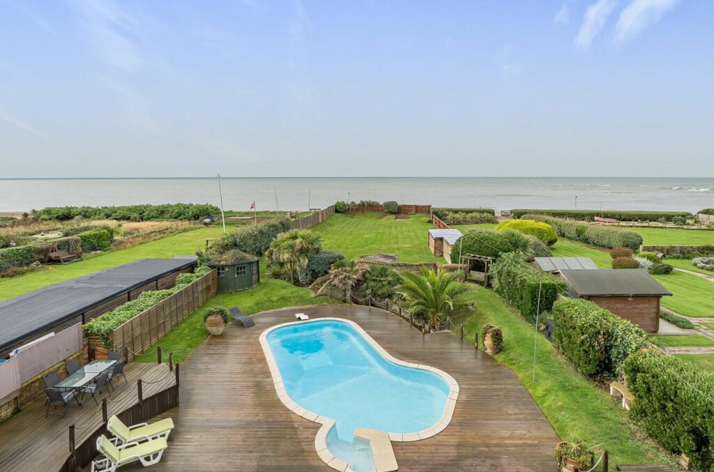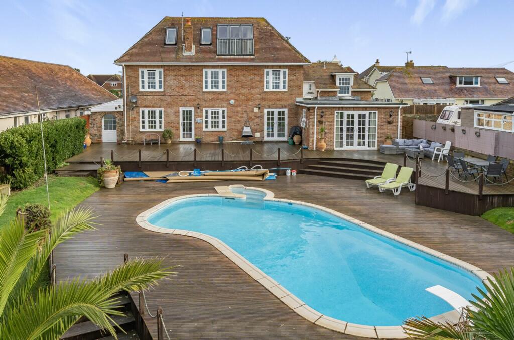 Experience prime oceanfront living with this expansive 3500sqft detached house boasting panoramic sea views. 5-6 bedrooms, 250fty approx. rear garden with beach access, heated pool, annexe potential, gated driveway for 5-7 cars. EPC-D Council tax-G