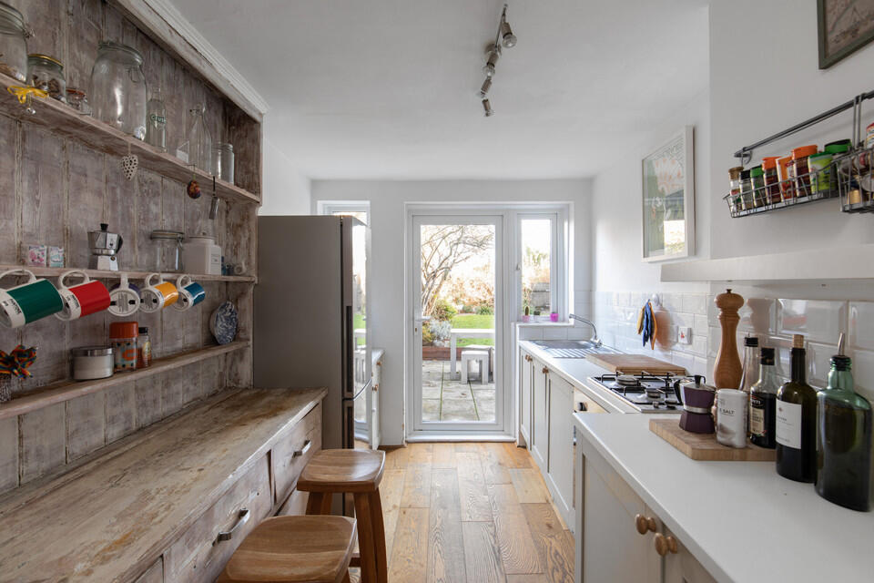 Huge and handsome two bedroom flat with own front door, off-street parking space, long lease, and a big and sunny east-facing garden. There is also obvious scope to extend to the rear of the property should you want to improve on the already-impressive 900 square feet footprint.