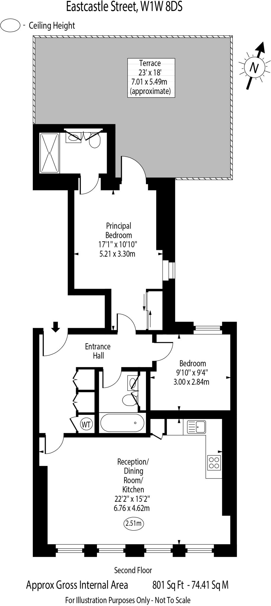 Located on the second floor of a well-maintained building with lift access on Eastcastle Street, this unfurnished apartment is ideal for a professional couple. The spacious layout features a large principal bedroom with an en-suite shower room, a second smaller double bedroom, and a separate fami...