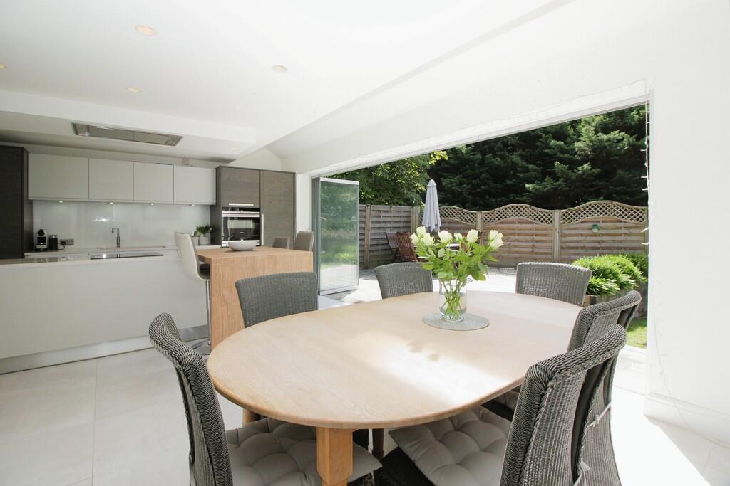 This property is located in the desirable Chislehurst area of Bromley, which benefits from excellent transport links via Chislehurst station (Southeastern line) and is also close to highly-rated schools such as Bullers Wood School. The property itself appears to be in excellent condition, having undergone a recent modernisation. The images show a modern, well-maintained interior and exterior, with a sizeable garden. While the square footage is not provided, the list price of £1,300,000 appears reasonable when compared to nearby similar properties and considering the high standard of finish and desirable location. The property benefits from a large garden with a patio area, perfect for entertaining.