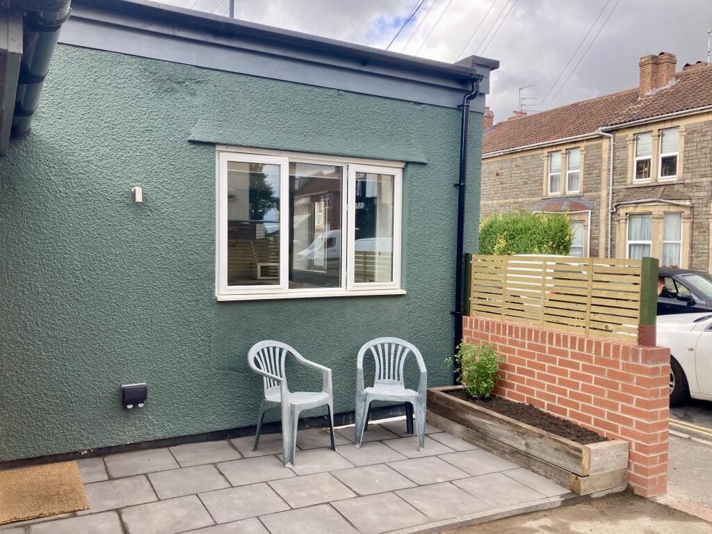 This unique property on New Queen Street offers a self-contained bungalow for the price of a flat. Situated conveniently just off Two Mile Hill Road in Kingswood at the end of a terrace of houses, it has private off-street parking and a small outdoor patio screened with shrubbery on the stree...
