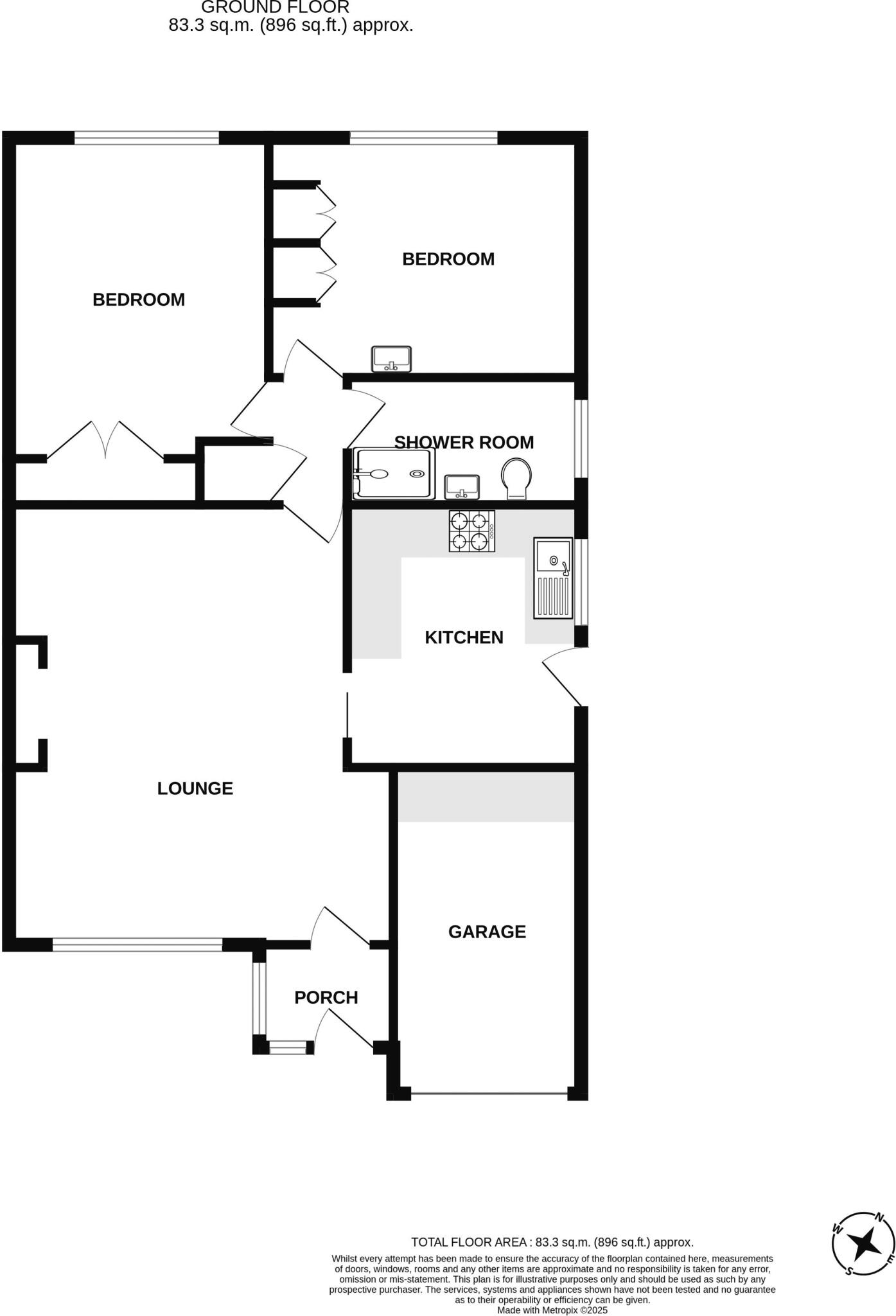It has two bedrooms and one bathroom, and a total area of 896 square feet, which is smaller than the average house size in the area (1,004 sqft). The list price is £299,950.