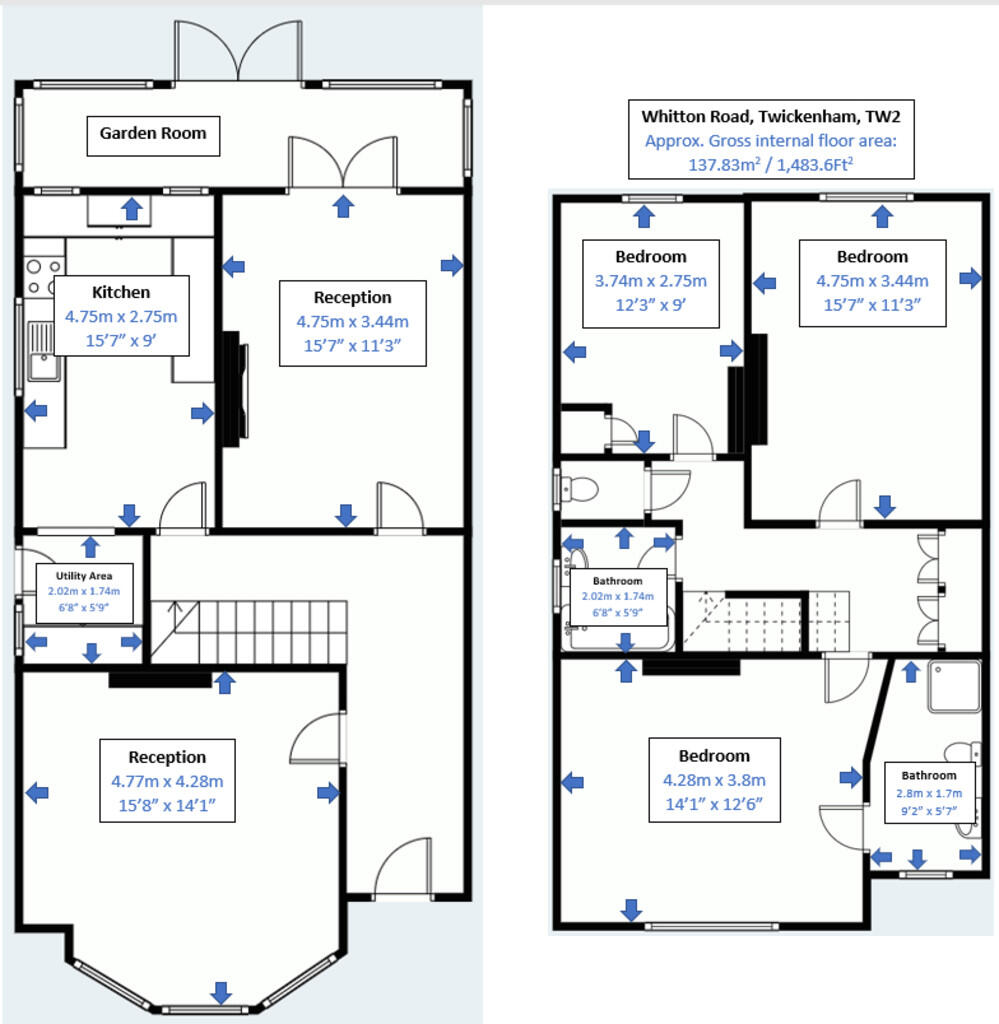 This property boasts 3 large bedrooms and 2 reception rooms. Semi Detached close to Twickenham BR with a fully fitted kitchen, two bathrooms, one with shower over bath, a garage and a large garden space.