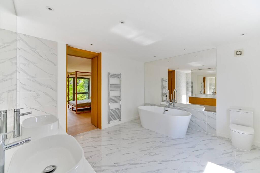 Extended and fully modernised to an impressive standard throughout, this stunning 6-bedroom family home provides bright and spacious living over 3 floors, as well as unique views over a tranquil fresh water lake.