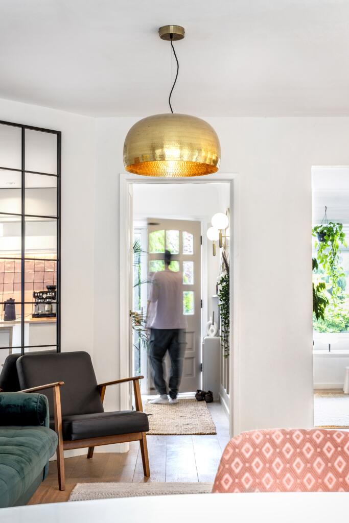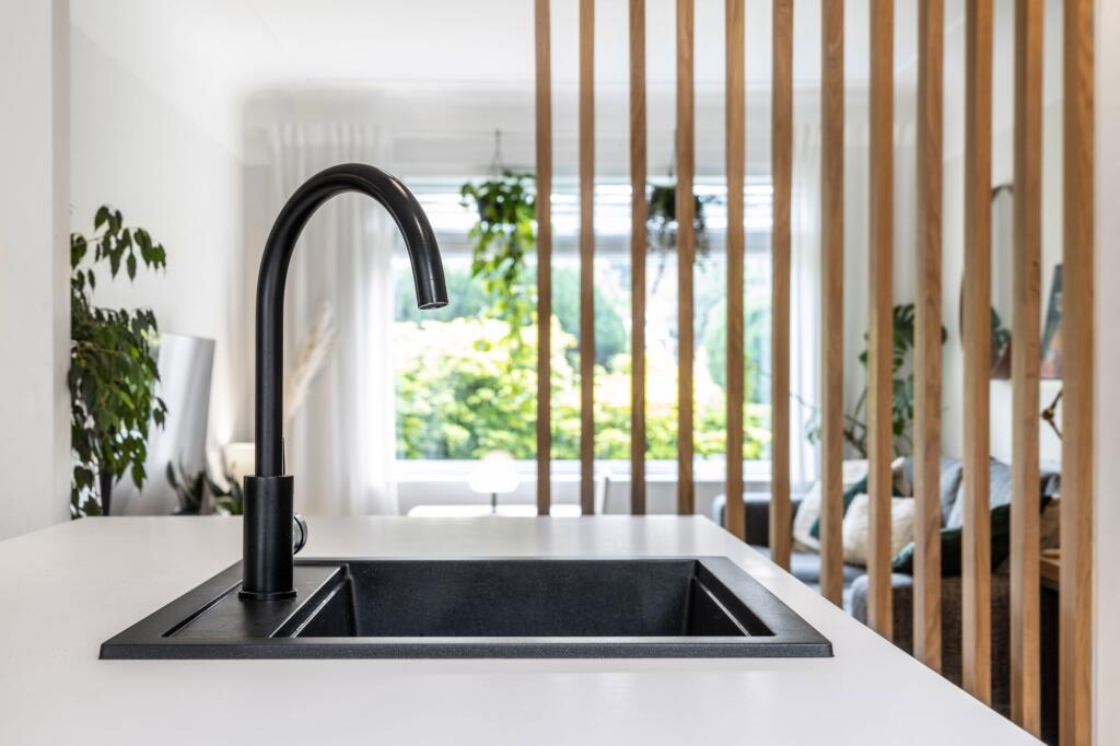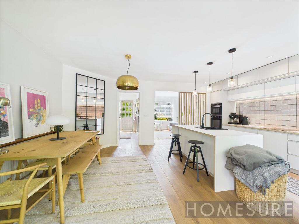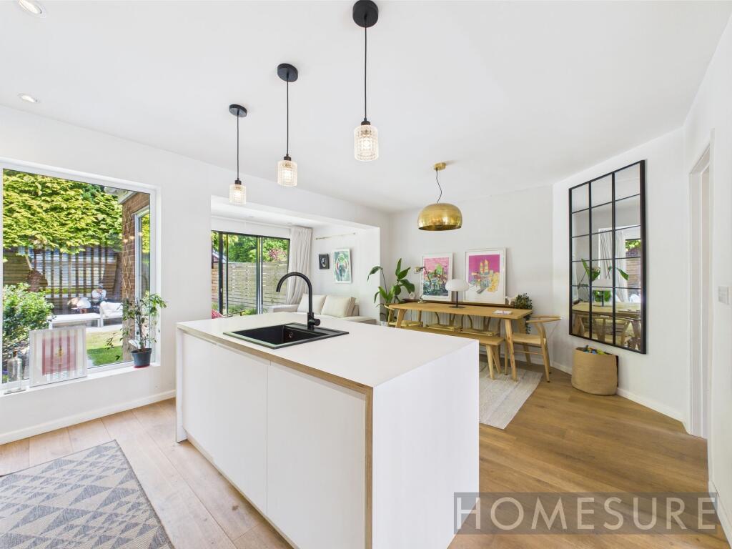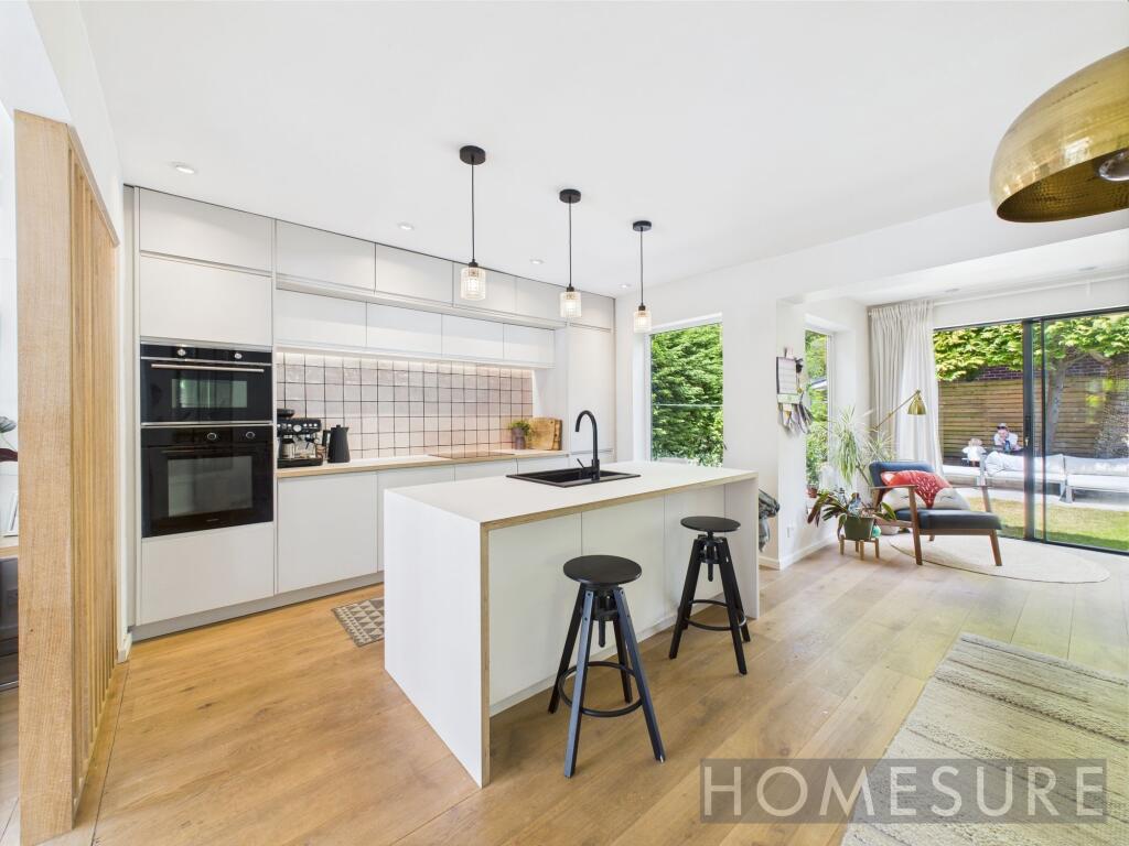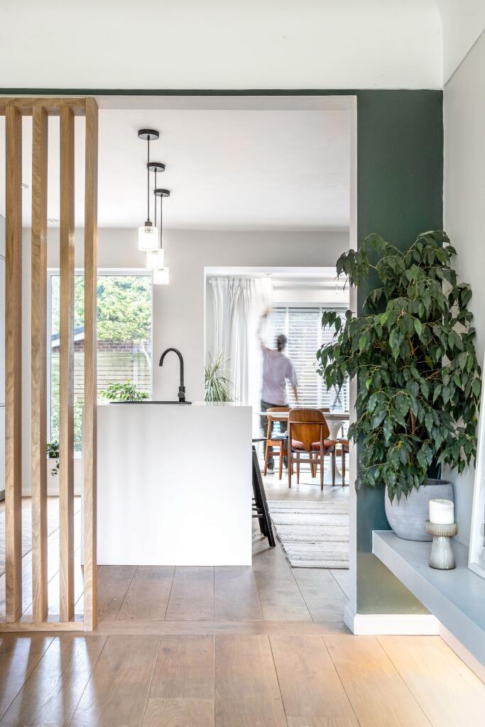 The property itself appears to be in excellent condition. Images show a recently renovated interior with a modern kitchen and bathrooms. There is no evidence of wear and tear or the need for repairs. The garden is well-maintained and landscaped, adding to the overall impression of a well-cared-for property. This suggests a high condition score.