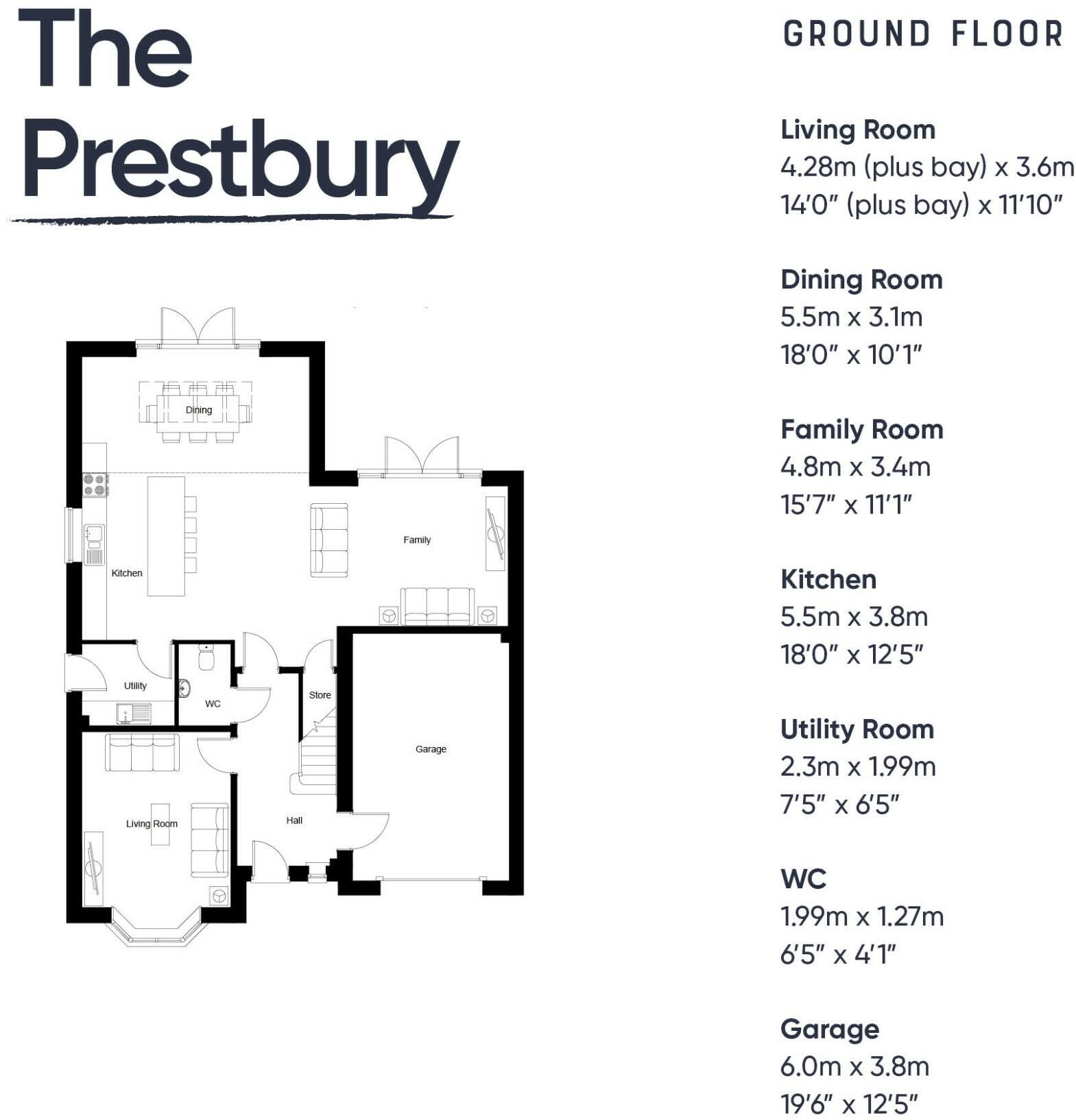 The Prestbury is a four bedroom detached home, open plan kitchen, dining & family room with feature skylight windows and French doors from both the dining room and family room. Downstairs WC and integral garage. Four spacious bedrooms, two ensuites and a large family bathroom.