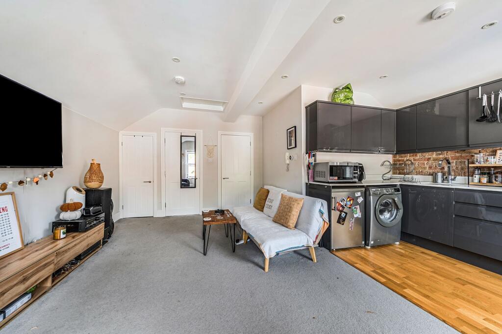 This is a one-bedroom flat located on Upper High Street in Epsom. The property benefits from a central location with good access to transportation, local amenities and schools. The interior appears to be in good, modern condition, with a recently updated kitchen and bathroom. However, the exterior of the building shows signs of wear and ongoing maintenance. The lack of private outdoor space may be a drawback for some buyers. The price seems high compared to the average price per square foot in the area, but is in line with similar properties nearby. Overall, this property would suit a single professional or couple looking for a convenient location in Epsom.