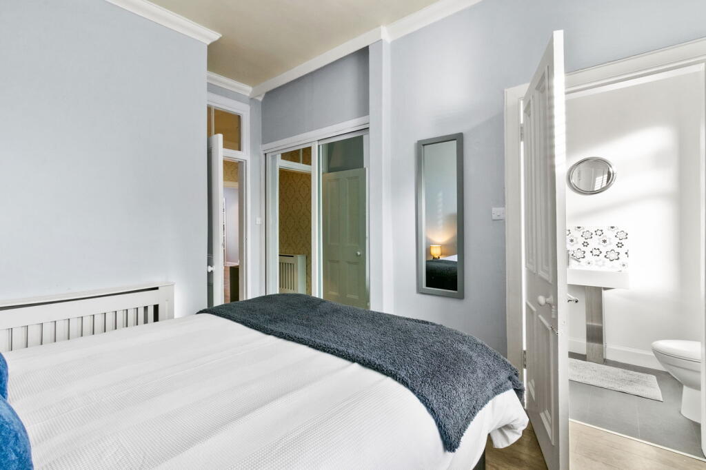 This is a two-bedroom flat in Hamilton South, presented by eXp UK. The property features two bathrooms and is listed for £130,000. The flat appears to be in good condition, with modern interior design. It also benefits from a garden. The location offers convenient access to Hamilton Central station. Considering the condition, location, and features, this property seems like a potentially good investment.
