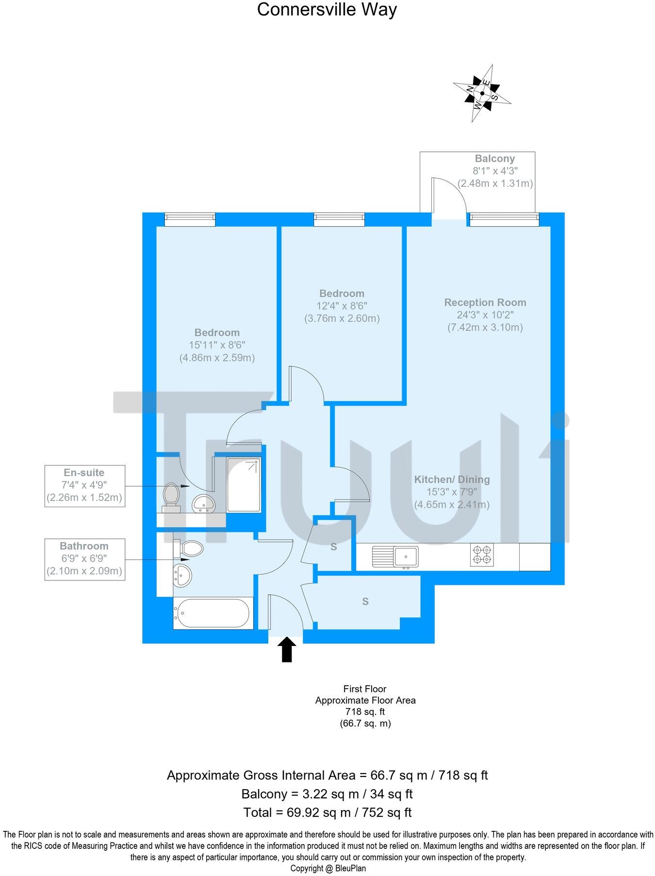 The property is a 2-bedroom, 2-bathroom flat located in Waddon, Croydon, with a list price of £300,000. The flat has 698 sqft of living space and a 752 sqft plot. The property is modern and well-maintained, as evidenced by the provided images. The images show a clean, contemporary interior with modern fixtures and fittings. There is also a small balcony. The location is reasonably convenient, with Waddon train station within a short distance. Several schools are also located nearby, offering families a good choice of educational options. However, the area’s average house prices (£779,634) and price per sqft (£686) are significantly higher than the subject property, suggesting that the property may be relatively more affordable. However, it should be noted that the average sqft for the area is significantly larger than the subject property. Considering the property’s modern condition, proximity to transportation and schools, and smaller size compared to the area average, the list price of £300,000 appears to be relatively reasonable. The property’s smaller size and plot size compared to the average in the area are important factors to consider when evaluating the price. Based on the images, the property appears to be in excellent condition and modern in style. There is no evidence of needed renovations. The property benefits from a small balcony.