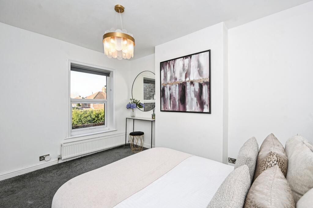 This is a three-bedroom terraced property located on Hood Lane, Great Sankey, Warrington. The property is listed for £245,000 by Purplebricks. The property benefits from its location, being close to local schools, amenities and transport links. The interior appears to be in good condition, with a modern kitchen and well-maintained living spaces. The property includes a paved garden area, providing outdoor space. Overall, this property presents a good opportunity for prospective buyers looking for a well-maintained home in a convenient location.