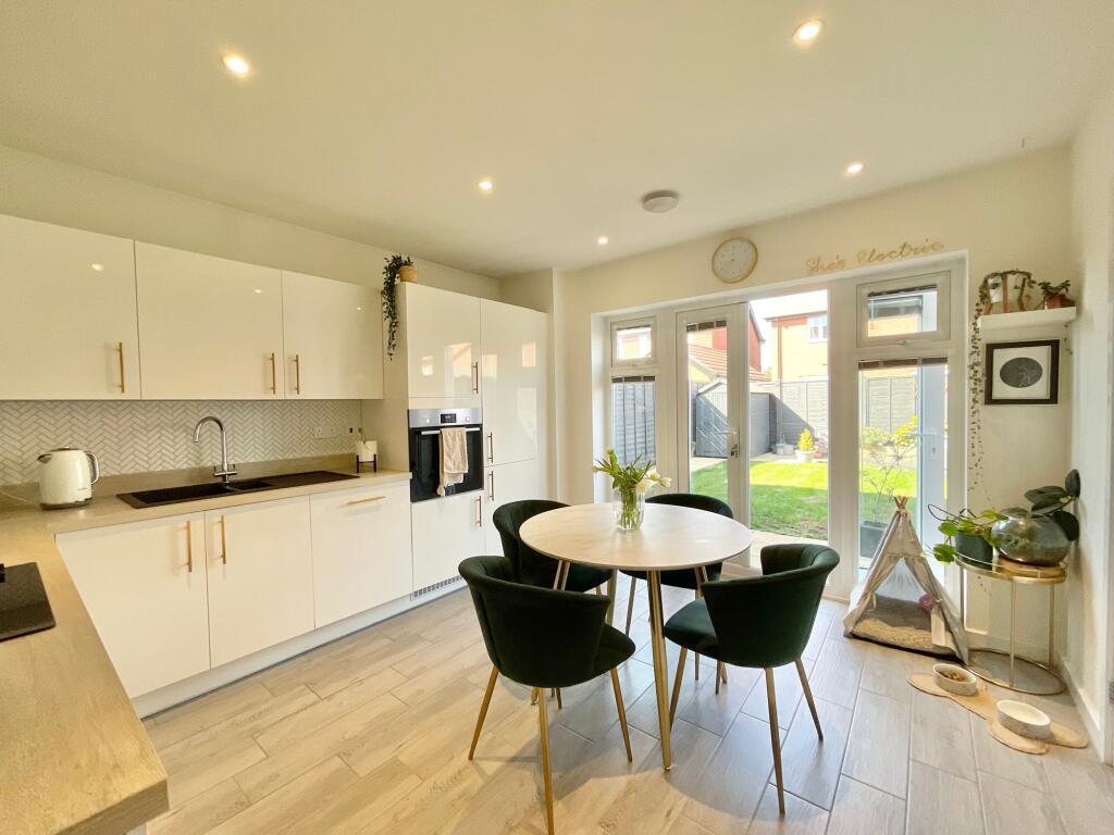 Exquisite 3-bed semi in Saxon Gate. Contemporary fittings, spacious living areas, off-road parking, and private garden. Ideal for first-time buyers, families. Great commuter links.