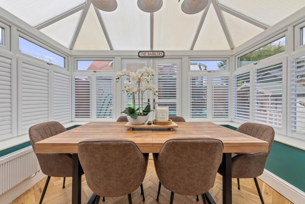 The property is a 3-bedroom, 1-bathroom house located on Christopher Road in Alford, Lincolnshire. It has a list price of £235,000 and a plot size of 1,122.68 sqft. The property appears to be in good condition based on the provided photos, with a modern kitchen and bathroom. There is a conservatory and a garden, which adds to the overall appeal.