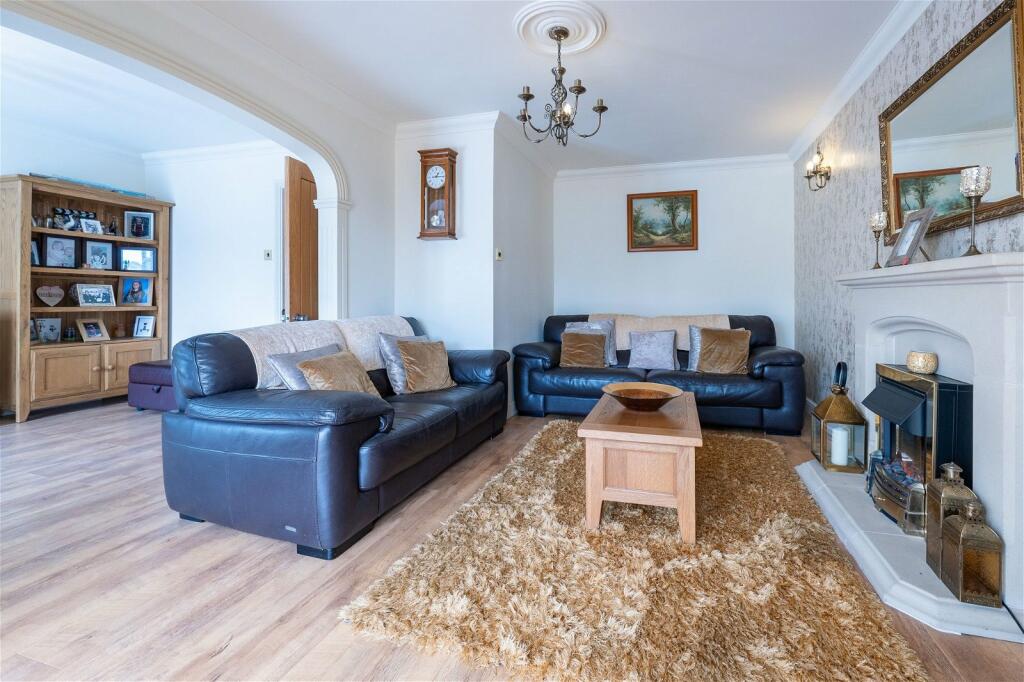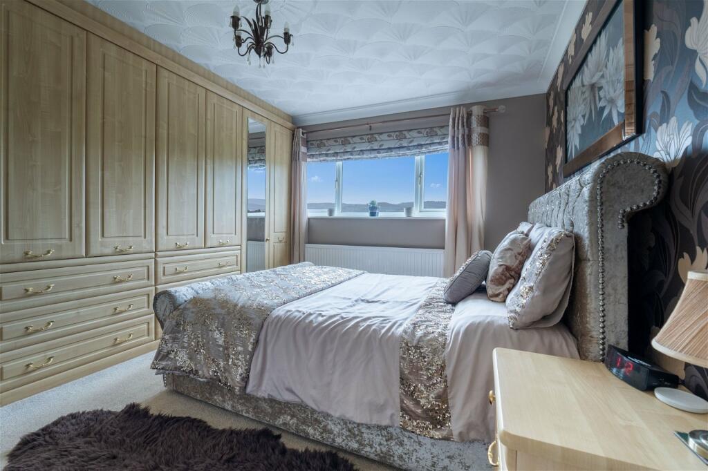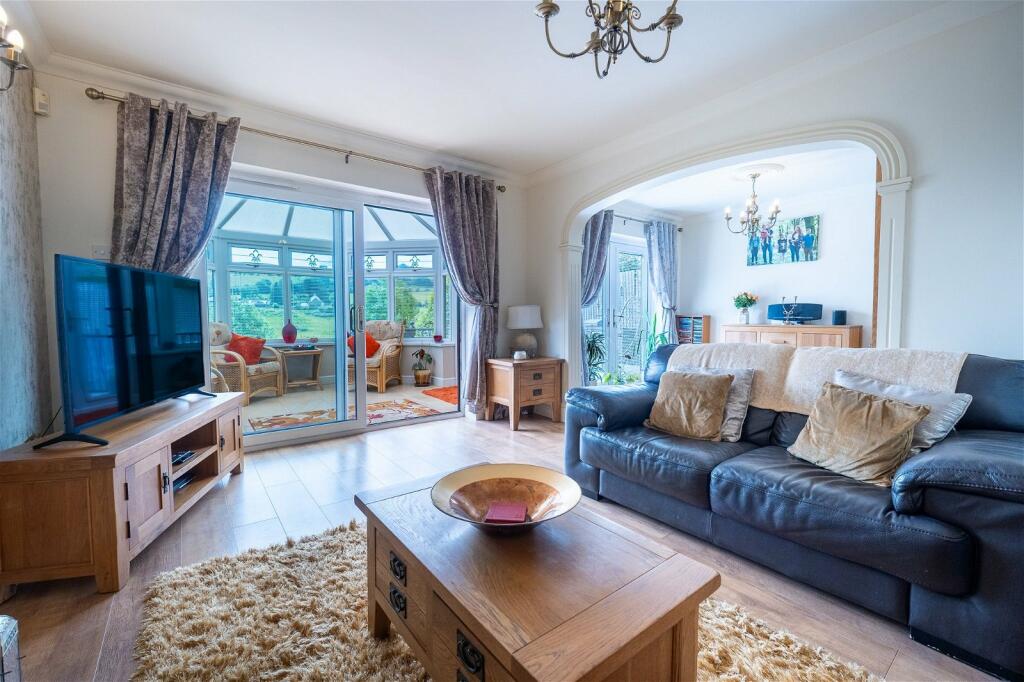 This is a detached property located on Cae Caradog in Penyrheol, Caerphilly. The property features four bedrooms and two bathrooms, offering ample space for family living. A standout feature of this property is the outdoor space, which includes a swimming pool, a well-maintained garden, and a patio area, perfect for outdoor entertaining and relaxation.