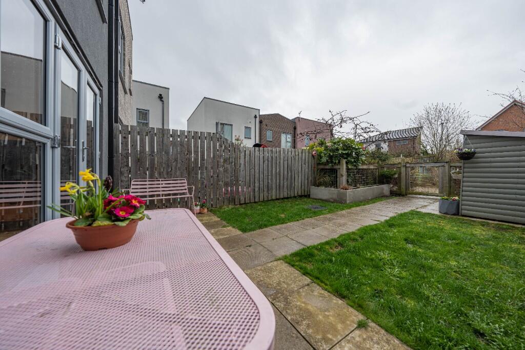 The property is a two-bedroom house located in the Bede Courtyard area of Dunston, Gateshead. Bede Courtyard benefits from an average house price of £165,000, suggesting the listing price of £170,000 is in line with the local market. The property appears to be in excellent condition, with modern fixtures and fittings throughout. The photos show a recently renovated or newly built property with a contemporary design. The kitchen and bathrooms are modern and well-maintained. The property also includes a private garden, which is a desirable feature for many buyers. The location is positive, with good access to local amenities and transport links. Dunston train station is within a reasonable distance, providing access to Newcastle and other areas. Several primary schools are also nearby, making it a suitable location for families.