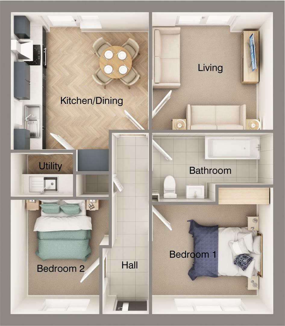 (*) BUNGALOW with TWO DOUBLE BEDROOMS, large living room and spacious kitchen/diner, practical UTILITY & bathroom. DRIVEWAY AND ENCLOSED REAR GARDEN. This property is being sold through Home Reach* SHARED OWNERSHIP. Full market value £212,500. Beautiful semi-detached home built by DERE STREET HO...
