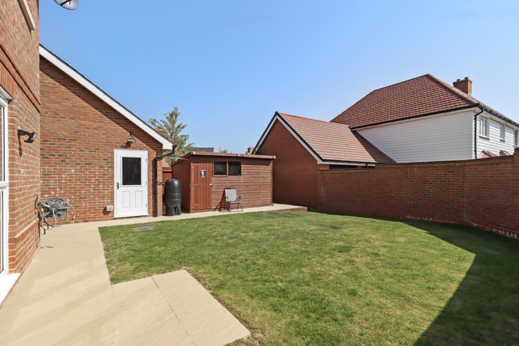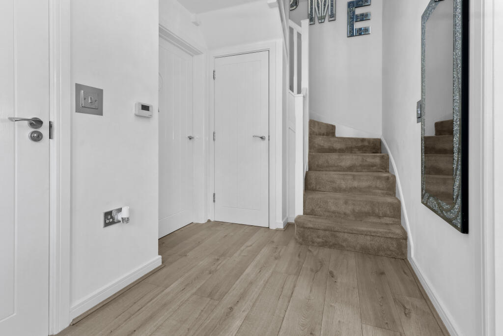 This four-bedroom, three-bathroom detached house in Hellingly, East Sussex, presents as a modern and well-maintained family home. The property’s condition is excellent, exhibiting clean lines, contemporary design and a bright, inviting atmosphere throughout. Interior photographs reveal a stylish and updated kitchen and bathrooms, along with spacious living areas. The exterior is equally appealing; it’s a well-presented brick house within a modern housing development.