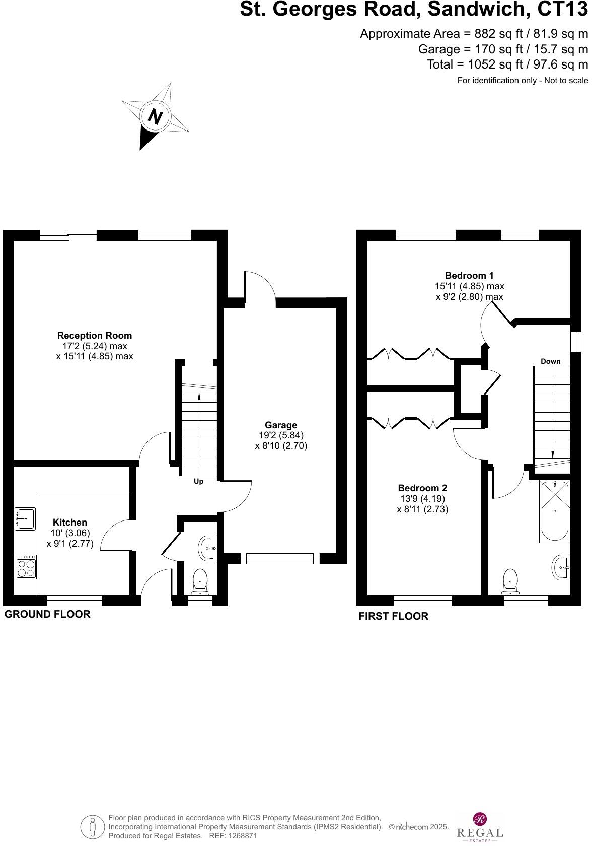 One of just six similar properties and tucked away off of the sought after St. Georges Road Sandwich - Mainline railway station just a short walk away which offers a high speed link to London - Two double bedrooms - Spacious bathroom & Gfl WC - Parking for 2 vehicles plus Garage .