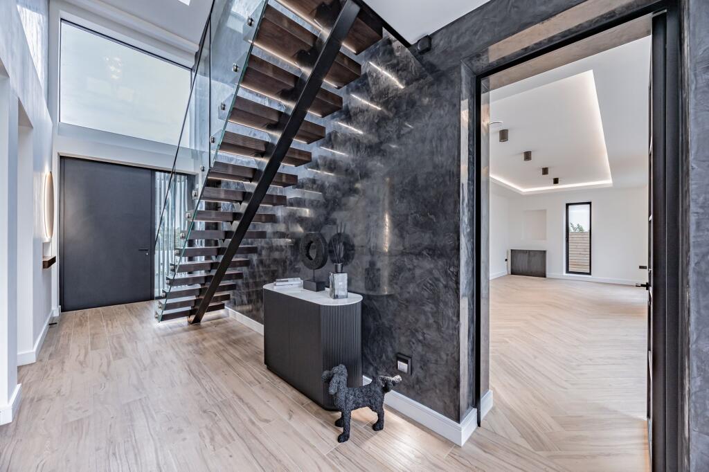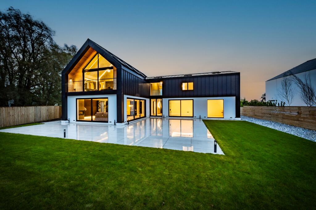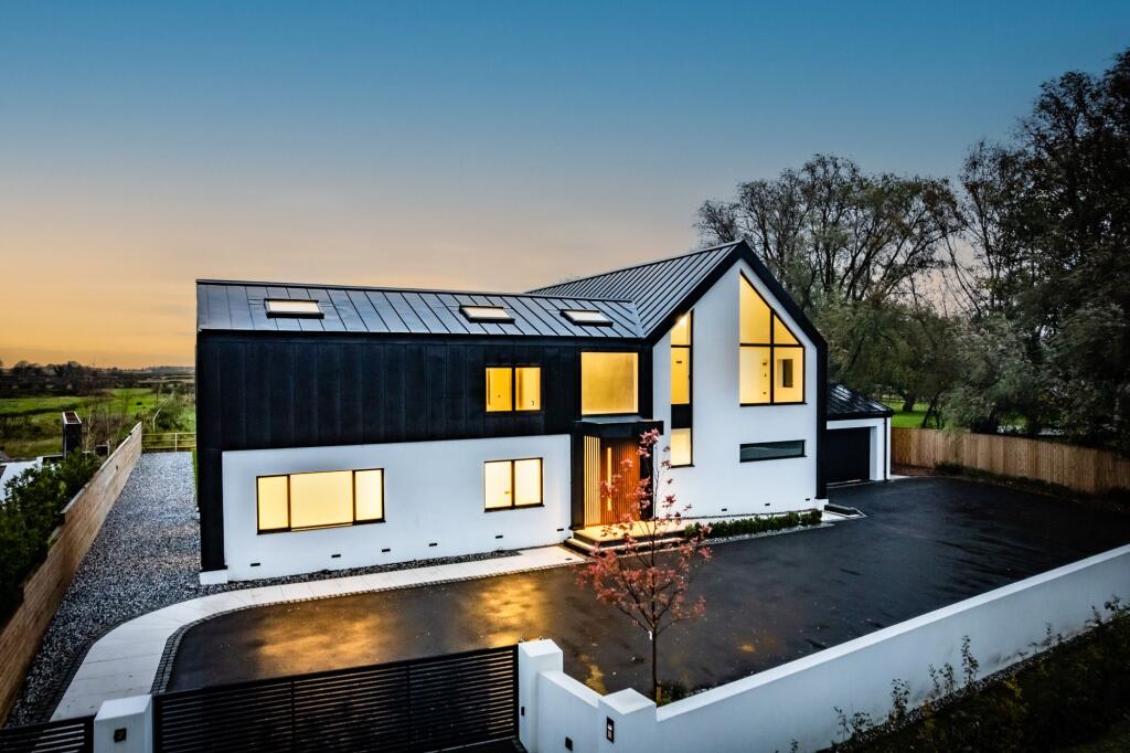 A contemporary home set within 1.77 acres of open countryside, blending modern architecture with a refined barn silhouette. Designed for light-filled living, it offers expansive glazing, luxurious finishes and an integrated smart-home system controlling lighting, heating and security.