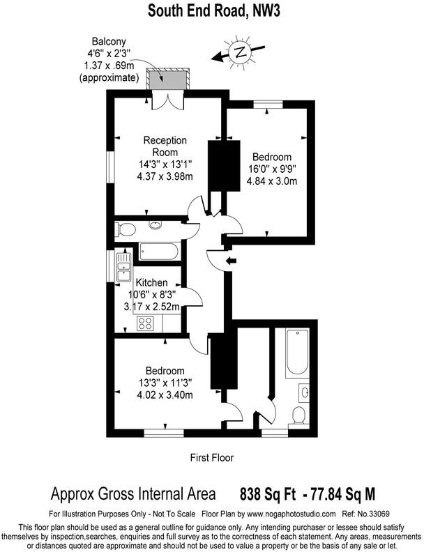A classic 2 bedroom Hampstead apartment (838 Sq Ft - 78 Sq M) on the first floor of a stucco'd Georgian house which overlooks Hampstead Heath.
