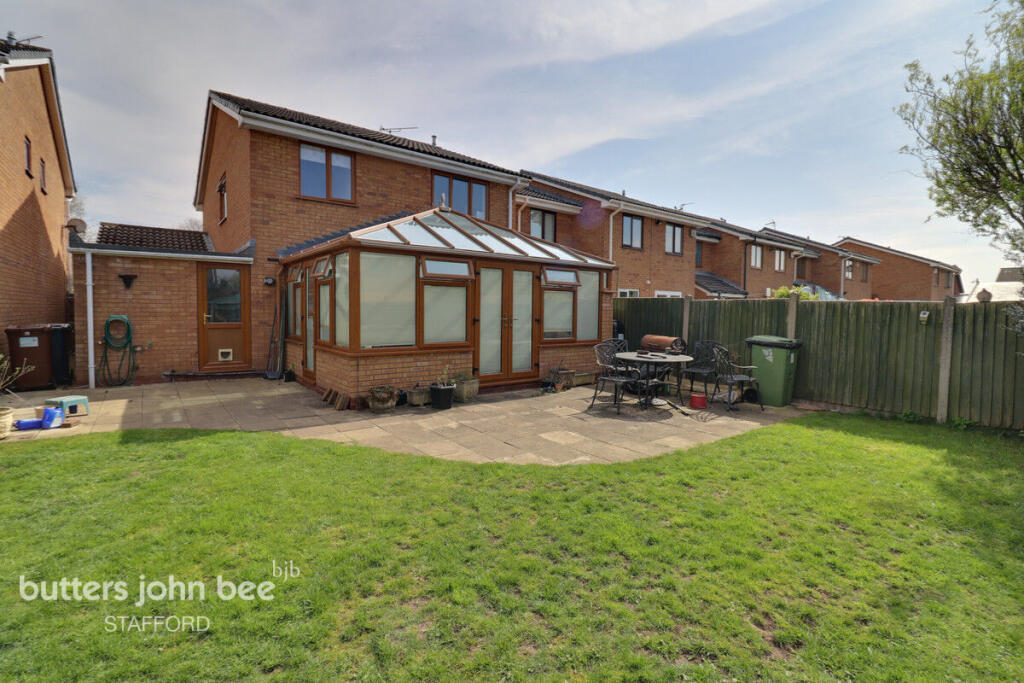 This property is a four bedroom detached house located in Stafford, Staffordshire. The property benefits from being close to local schools such as Marshlands School (0.62km) and Tillington Manor Primary School (0.94km), both rated as ‘Good’ by Ofsted. Transport links are also convenient, with Stafford train station approximately 2.62km away. The property itself appears to be in reasonable condition, although some modernisation may be desirable. The images show a traditional style property with a conservatory and a garden. The asking price of £350,000 is slightly higher than the average price for the area (£269,682), however, given the size of the property (information not provided) and the lack of information regarding the property’s square footage, a definitive judgment on value for money cannot be made. More information is needed to fully assess the price.
