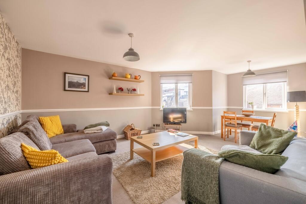 Welcoming to the market, a bright and airy apartment in the heart of Windsor town centre. Located on the high street you are just a stones throw from local shops and restaurants as well as a short walk to both train stations for London connections. This first floor property has a large living/din...