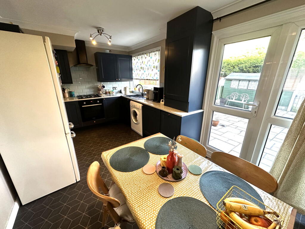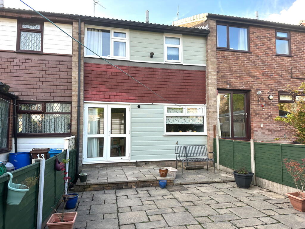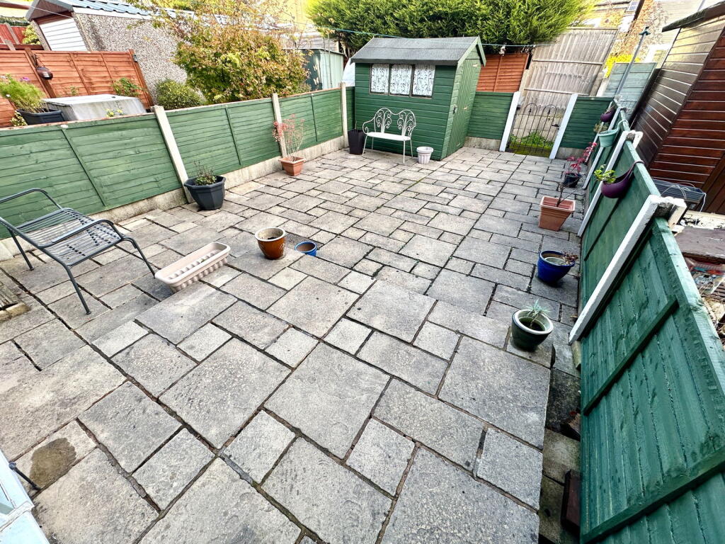 This is a three-bedroom terraced house in Royton, Oldham. The property features a modern kitchen and bathroom, and gardens to the front and rear. The property is in reasonable condition, and the asking price of £200,000 seems fair for the area. The property is located close to local schools and amenities, making it a suitable family home or investment opportunity. The interior design is modern, and the property appears well-maintained. The rear garden is paved and includes a shed, providing a low-maintenance outdoor space.